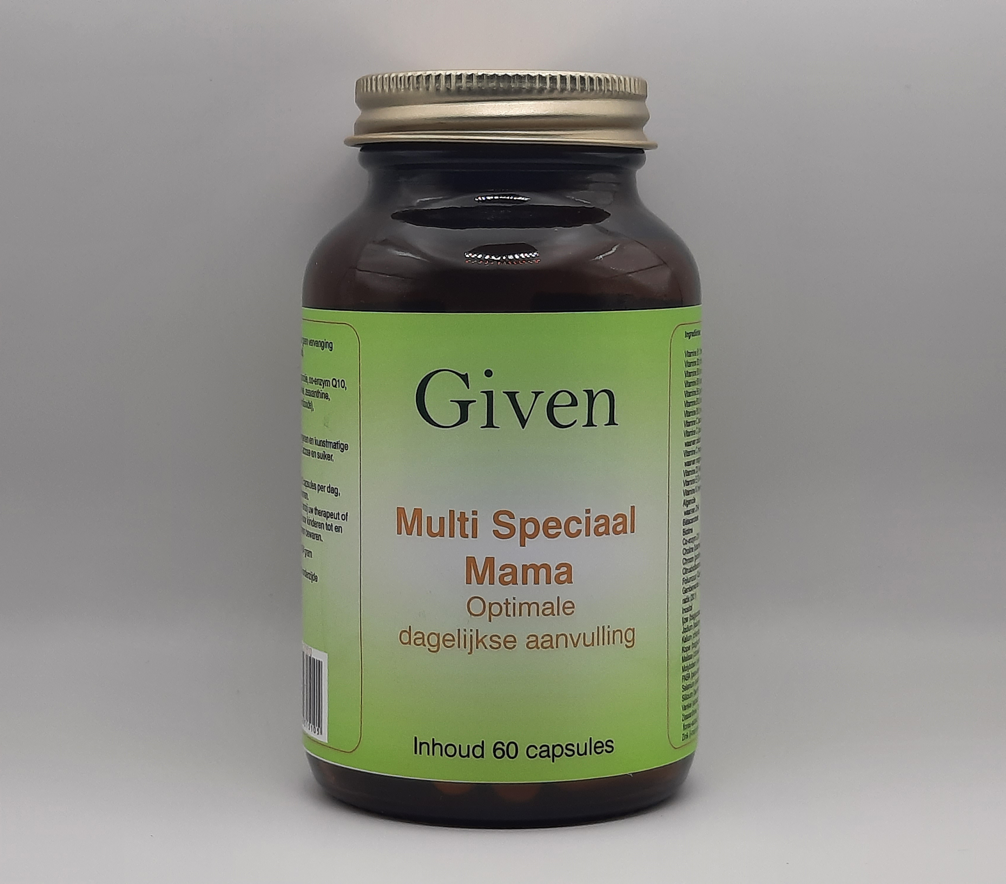 Multi Speciaal Mama is speciaal ontwikkeld ter ondersteuning tijdens de zwangerschap en de periode van borstvoeding. De formule bevat een uitgebalanceerde mix van vitaminen, mineralen, DHA uit algenolie en plantaardige extracten zoals gember, venkel en melisse.
