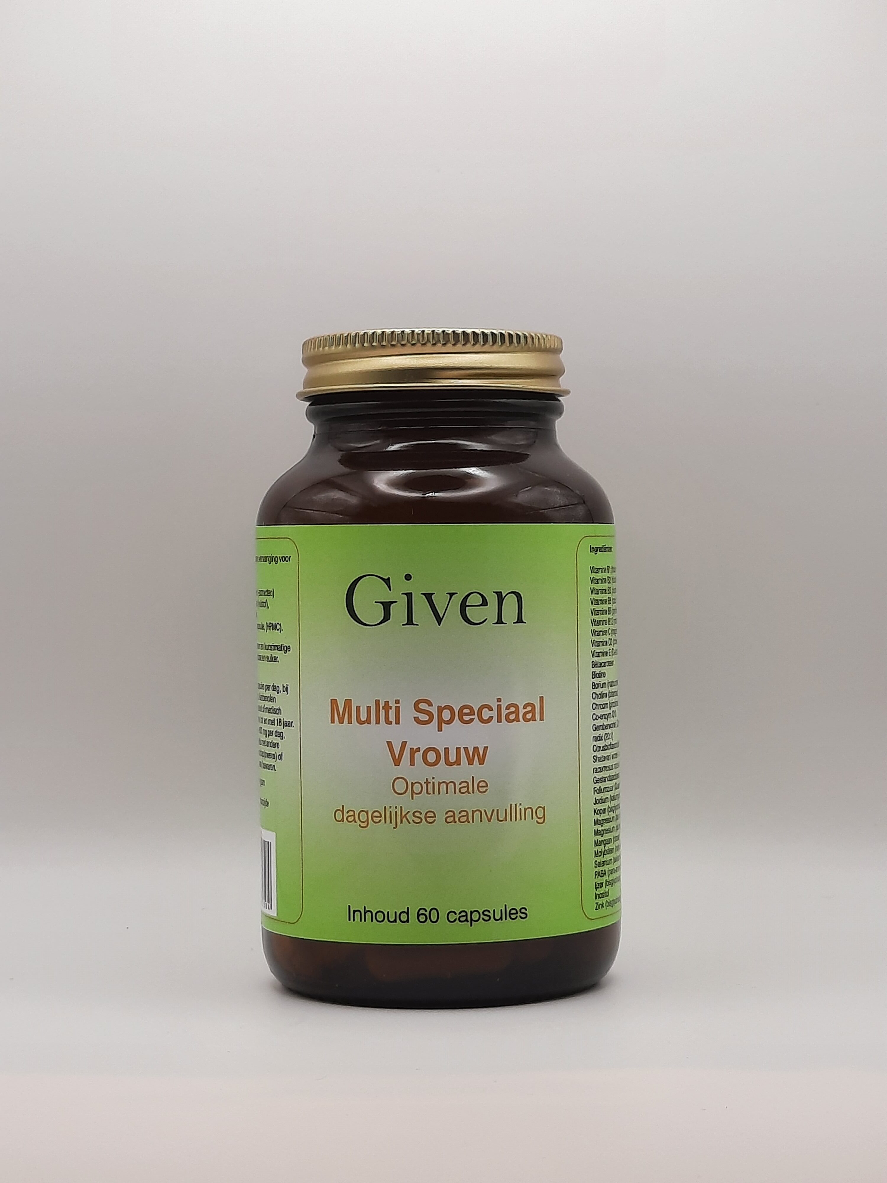 Multi Speciaal Vrouw is ontwikkeld om vrouwen te ondersteunen tijdens verschillende levensfasen, met name rondom de menstruatie en overgang. De combinatie van vitaminen, mineralen en kruiden zoals shatavaria, gember en groene thee helpt bij het behoud van energie, hormoonbalans en vitaliteit. Daarnaast bevat deze formule antioxidanten, foliumzuur en co-enzym Q10, die bijdragen aan een gezonde stofwisseling en weerstand.